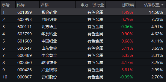 风险提示:基金有风险,投资需谨慎。投资人应当阅读《基金合同》《招募说明书》《产品资料概要》等法律文件,了解基金的风险收益特征,特别是特有风险,并根据自身投资目的、投资经验、资产状况等判断是否和自身风险承受能力相适应。基金管理人承诺以诚实信用、谨慎尽责的原则管理和运用基金资产,但不保证基金一定盈利或本金不受损失。以上基金属于中等风险等级(R3)产品,适合经客户风险承受等级测评后结果为平衡型(C3)及以上的投资者。请投资者关注指数化投资的风险以及集中投资于细分有色指数成分股的持有风险,请关注部分指数成分股权重较大、集中度较高的风险,请关注指数化投资的风险、ETF运作风险、投资特定品种的特有风险等。文中提及个股仅为指数成份股客观展示列举,本文出现信息只作为参考,投资人须对任何自主决定的投资行为负责。本文中的任何观点、分析及预测不构成对阅读者任何形式的投资建议。