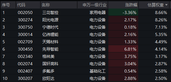 【电池50ETF(159796)标的指数前十大成分股】