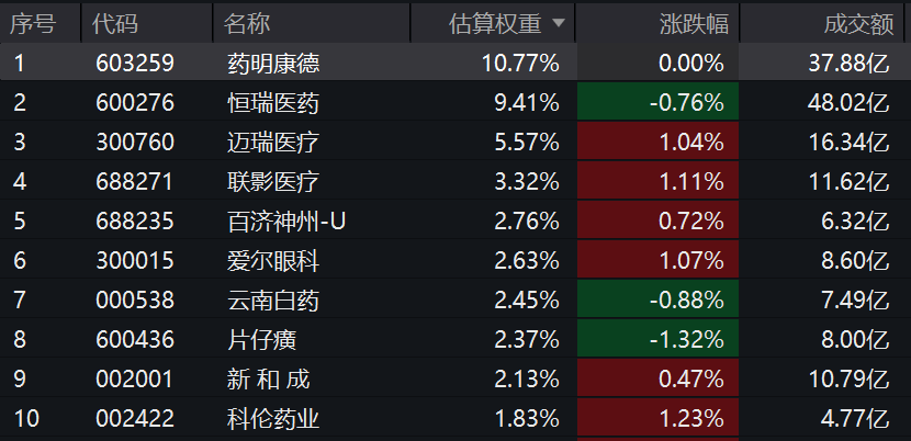 医药ETF(159929)标的指数成分股多数飘红:迈瑞医疗、联影医疗、爱尔眼科、科伦药业涨超1%,百济神州-U、新和成微涨,药明康德收平。下跌方面,片仔癀跌超1%,恒瑞医药、云南白药微跌。