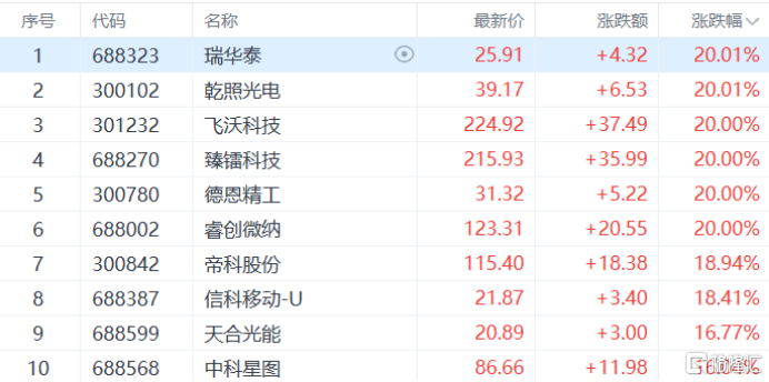 光伏设备板块爆发,隆基绿能、捷佳伟创及晶科能源等二十余股涨停,帝科股份、天合光能等多股跟涨。