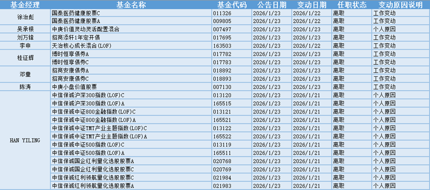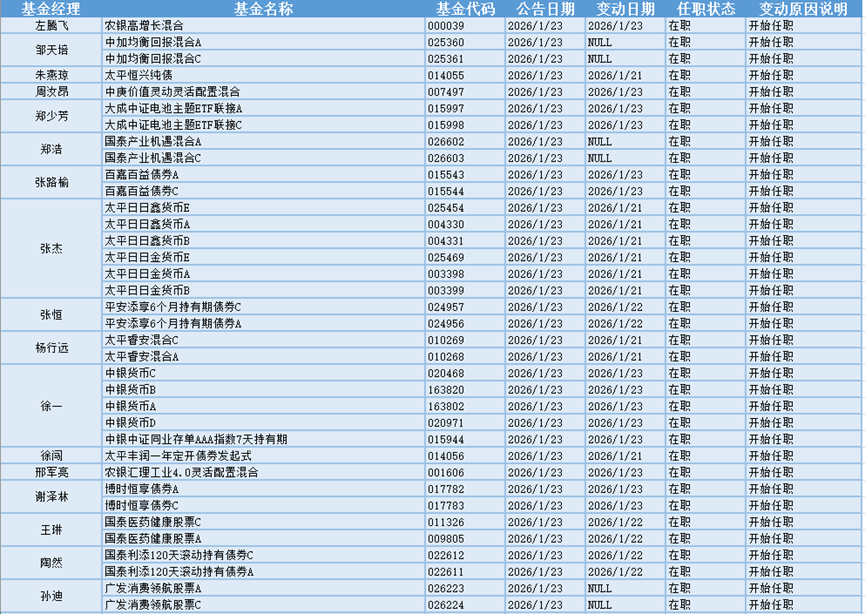 HIT电池板块大涨,1月23日有36位基金经理发生任职变动
