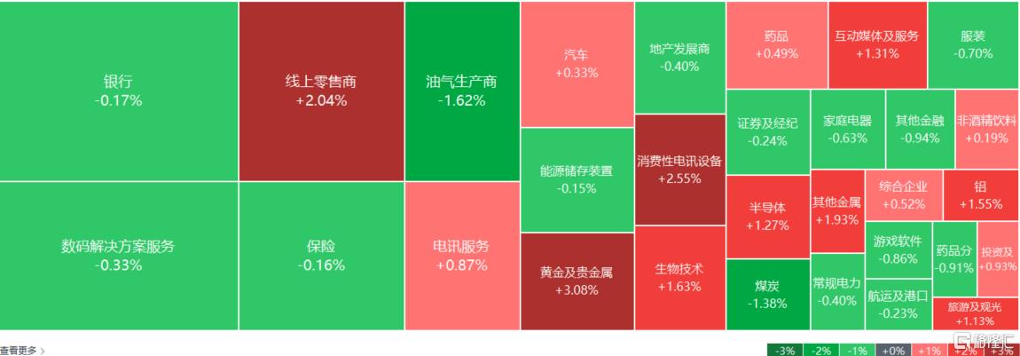 另一方面,欧美针对格陵兰的紧张关系降温,石油股全天低迷;航空股、煤炭股、燃气股、电力股、建材水泥股、内房股走低。