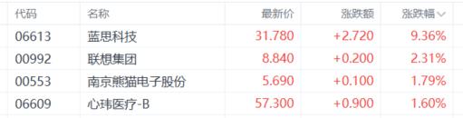 脑机接口概念股活跃,蓝思科技涨超9%,联想集团、南京熊猫电子股份、心玮医疗等跟涨。