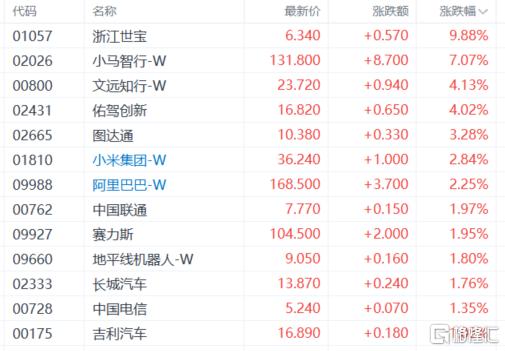 智能驾驶概念股走强,小马智行涨超7%,文远知行、佑驾创新、图达通、小米集团、赛力斯等跟涨。