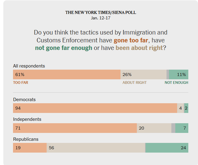这项民调是在37岁的母亲蕾妮·古德被ICE人员在明尼阿波利斯当街枪杀之后进行的。