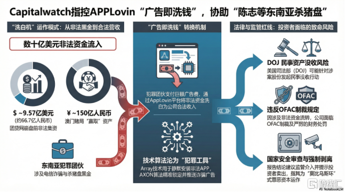 这份报告并没有纠结于常见的估值泡沫或技术细节,而是直接抛出了一个逆天的指控:Applovin并非单纯的商业奇迹,而是一个庞大跨国洗钱网络的关键一环。