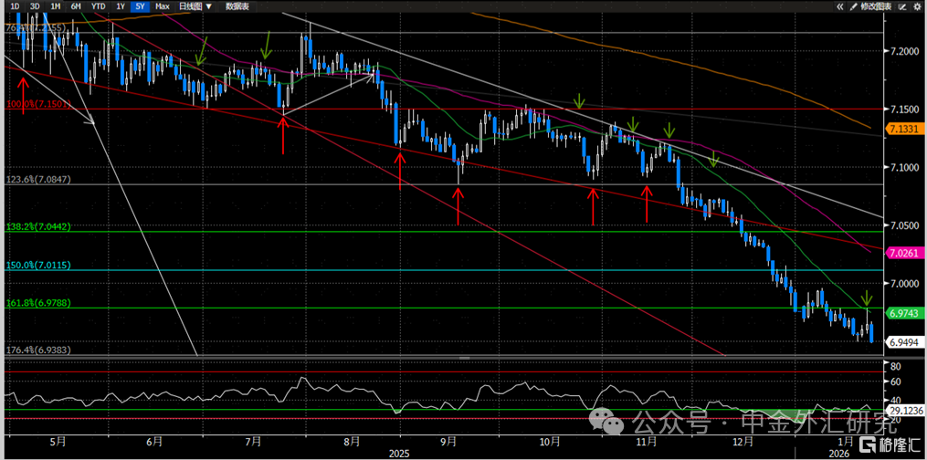 图表17:美元兑离岸人民币(日线)走势技术分析