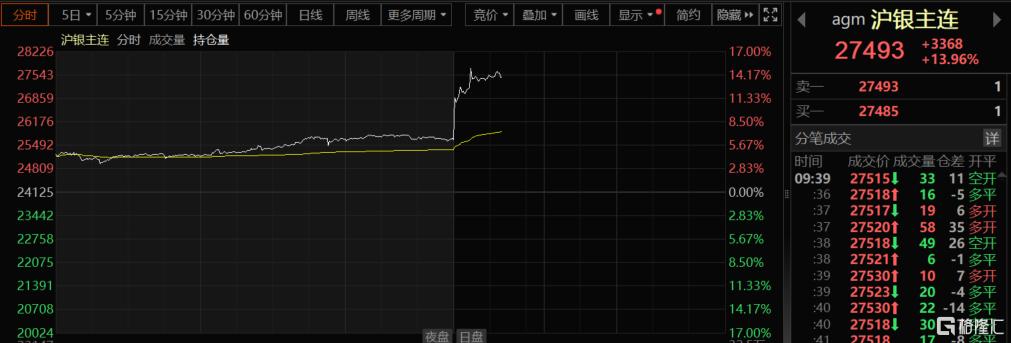 国内商品期市早盘主力合约开盘多数上涨,其中,沪银大涨超14%,月内累计涨超50%;沪锡暴涨10%;铂涨超8%;钯涨超6%。