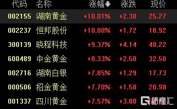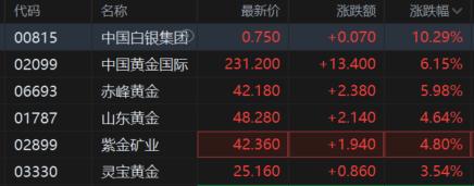 港、A股贵金属股集体走强。A股中,湖南黄金、恒邦股份涨停,晓程科技涨超9%,中金黄金、招金黄金涨超8%;港股中,中国白银集团涨超10%,中国黄金国际、赤峰黄金涨超6%。
