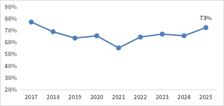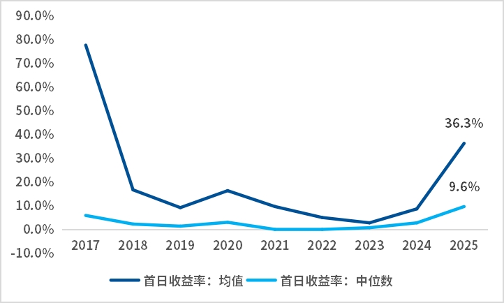 此外,根据wind统计来看,自21年以来港股打新胜率持续走高,截至2025年打新胜率已经抬升至73%。从打新首日收益率角度来看,2025年首日收益率均值、中位数均大幅提升至36.3%、9.6%,均为自2018年以来新高。打新胜率、打新收益的趋势性提升也有望持续提高市场对港币的需求,进而促进流动性的进一步释放,边际上对港股估值有提振作用。