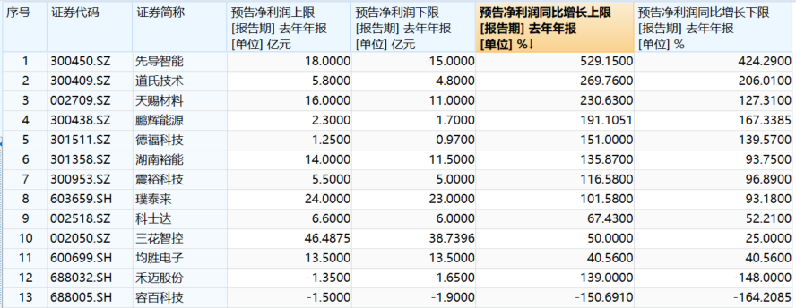 近期,电池龙头纷纷发布2025年业绩预告,电池板块业绩亮眼!电池50ETF(159796)标的指数成分股中有13家已经公布,其中11家业绩同比实现正增长,先导智能以424%-529%的涨幅暂居第一!