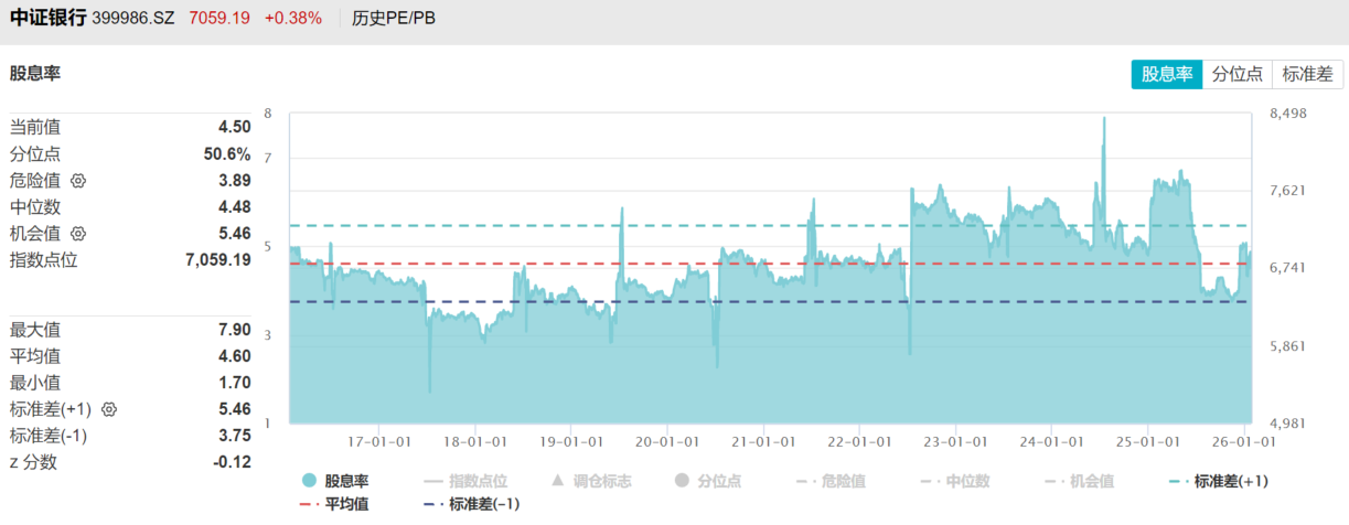 图表:银行ETF汇添富(512820)标的指数股息率达4.5%