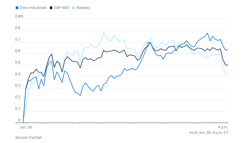 0126市场综述:美股三大指数小幅走高,标普500未能冲上7000点,金银继续大涨