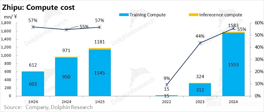 但智谱的情况就是一个非常明显的收入高增,但模型创收对训练成本的回收能力,因为训练成本增长斜率更高,反而越来越弱。