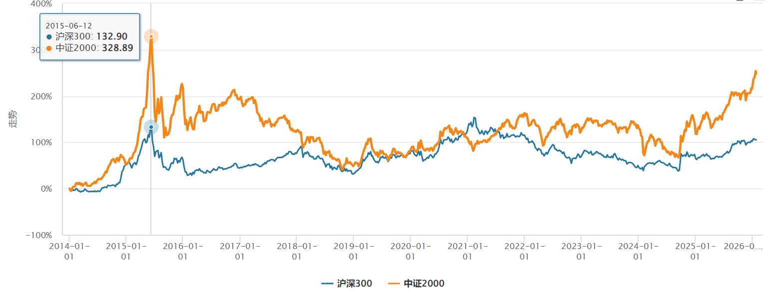 回顾A股近二十年走势,一个被反复验证的规律浮出水面:每一轮成交额的阶梯式放量,都伴随着中小盘风格的强势崛起。2014-2015年行情中,市场成交额从3000亿跃升至万亿规模,中证2000较沪深300的超额收益高达196%。