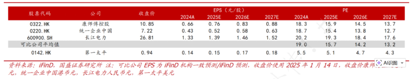 从估值角度看,据国盛证券测算,2025年第一太平市盈率约为5.1倍,低于康师傅控股、统一企业中国、长江电力等可比公司15.7倍的平均市盈率,估值修复空间显著。