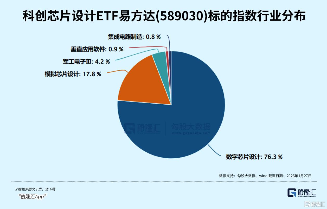 科创芯片设计ETF易方达(589030)标的指数高度聚焦芯片设计环节,是市场上纯正设计主题指数,数字芯片设计占比76.3%,模拟芯片设计占比约17.8%;单日涨跌幅上限为20%,弹性高。