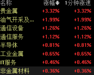 贵金属概念集体高开,中国黄金4连板,湖南黄金3连板,四川黄金、赤峰黄金、招金黄金、豫光金铅、盛达资源、兴业银锡高开。消息面上,现货黄金盘中首次突破5200美元/盎司,再创新高,新年首月累计涨超880美元。截至发稿,报5184.54美元/盎司,涨0.05%。