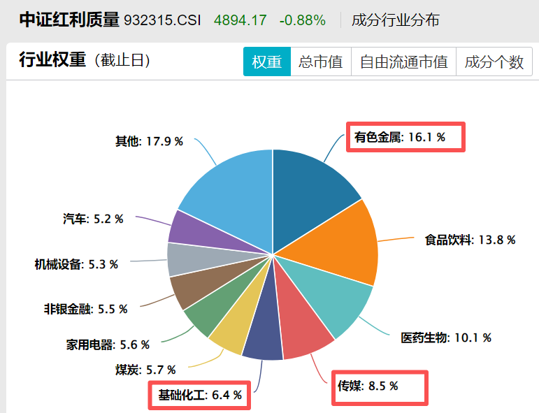 而近期,中证红利质量指数创新高的密码,就藏在它的权重行业里。其第一大权重行业为有色金属、第四及第五大行业分别为传媒与基础化工。这三者正是本轮经济复苏与产业景气上行中,弹性与景气度兼具的先锋赛道。