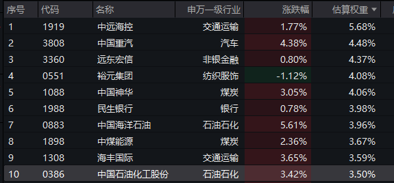 【港股红利ETF基金(513820)标的指数前十大成分股】