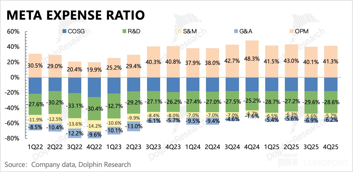 整体看管理层对投入这块的预算,仍然给的比较足。至于后续是否有可能控制,按照 Meta 管理层以往惯性,这可能取决于收入端的增长是否有压力。再加上大模型这一块 Meta 需要补差距,因此压力不到一定程度,至少 AI 方面投入不会轻易做大幅控制,能够优化的空间还是在传统业务部门上。