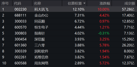 软件ETF汇添富(159590)标的指数权重股多数飘红:科大讯飞涨停,三六零、用友网络涨超5%,金山办公涨超4%,深信服涨超3%,恒生电子、润和软件、拓维信息涨超1%。