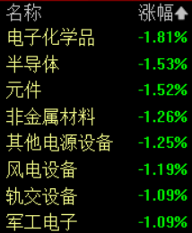 下跌方面,半导体产业链走势较弱,北京君正、神工股份跌超6%。