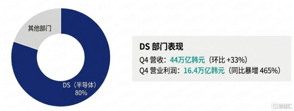 半导体部门(DS)Q4营收44万亿韩元,环比增长33%,营业利润16.4万亿韩元,同比暴增465%。