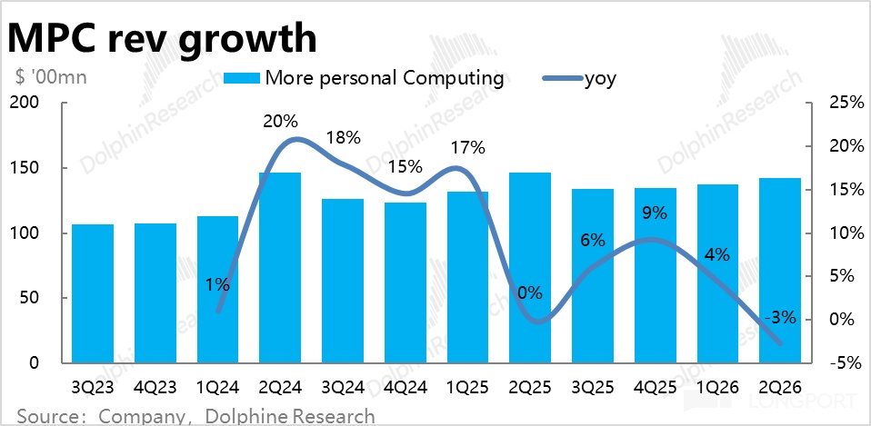 本季度其他个人板块增长比较披露,营收增速再度转负,为-3% yoy。