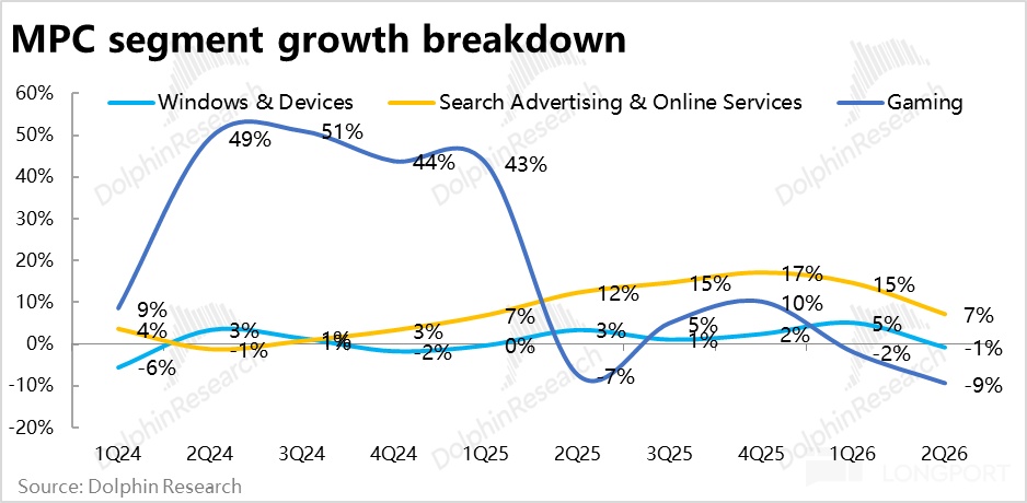 3) 游戏板块则因 Xbox 主机等销售不佳收入同比大降 32%,也表现不佳。