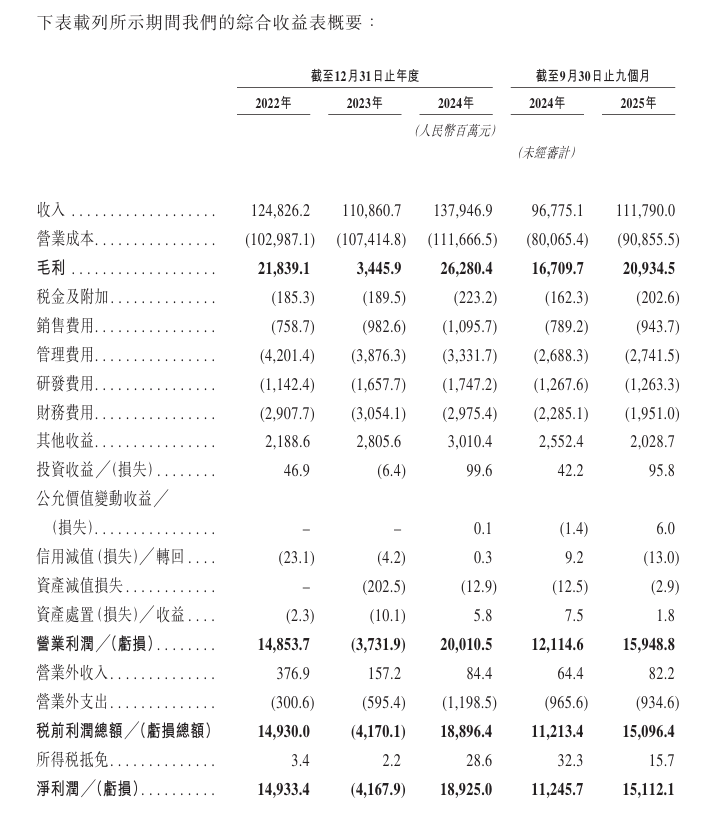 收入随猪价起舞,规模稳步扩张,公司收入从2022年的1,248.3亿元降至2023年的1,108.6亿元,同比下降11.2%,主要受2023年猪价深跌影响;随后在2024年猪价回升时反弹至1,379.5亿元,同比上升24.4%。值得注意的是,在猪价波动的背后,公司生猪出栏量保持稳健增长,从2022年的6,120万头增至2024年的7,160万头,体现了以量补价的规模韧性。2025年前九个月,在猪价下行压力下,收入仍同比增长15.5%,主要得益于出栏量增长及屠宰业务放量。