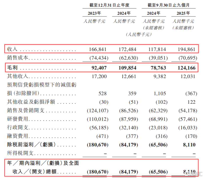 2023年、2024年及2025年1-9月(报告期),公司的收入分别为1.67亿元、1.72亿元、1.95亿元,净利润分别为-1.81亿元、-8418万元、811万元。