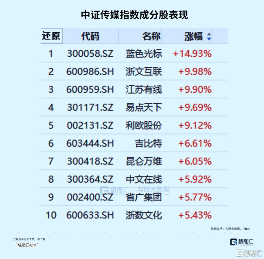 AI应用活跃,GEO概念今日再度大涨。因赛集团、天龙集团20cm涨停,蓝色光标、易点天下、值得买等大幅拉升,带动传媒ETF(512980)上涨4.5%,近一个月涨幅27.4%。