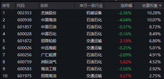 【油气ETF汇添富(159309)标的指数前十大成分股】