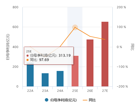 以科创芯片ETF汇添富(588750)标的指数为例,其25年预计归母净利润同比或达98%,远超沪深300(9.56%),26、27年同样有望维持高增。