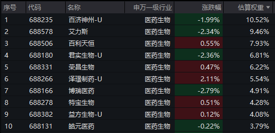 【科创创新药ETF汇添富(589120)前十大成分股】
