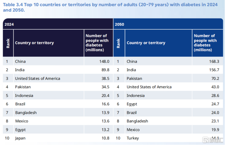 最新版国际糖尿病联盟(IDF)《全球糖尿病地图》数据显示,2024年全球糖尿病直接健康支出已突破1万亿美元,全球20至79岁成人糖尿病患者达5.89亿,相关死亡人数超340万,占全球死亡总数的9.3%,预计到2050年,全球糖尿病患者总数将进一步攀升至8.53亿。
