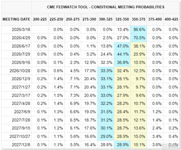 据CME“美联储观察”,美联储3月和4月维持利率不变的概率分别为86.6%和70.5%。