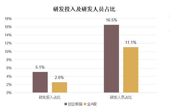 创业板ETF汇添富(159247)标的指数是创业板的代表性指数,其成份股数量仅占创业板的7%,但覆盖了创业板45%以上的市值及营业收入、85%的归母净利润、约40%的研发投入及人员。