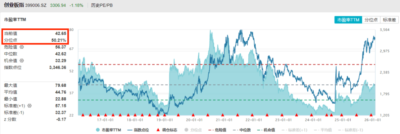 创业板ETF汇添富(159247)标的指数估值相对合理。截至1月30日,市盈率(TTM)为42.65,处于近10年历史上50.21%分位点,比近一半时间性价比更高。
