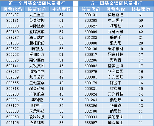 从个股调研情况上来看,最近1个月(1月3日-2月2日)最受公募基金关注的是大金重工,大金重工属于金属制品行业,主营业务为生产销售海上风电单桩基础、过渡段、导管架、浮式基础以及塔筒产品,为客户提供海上风电装备的“建造 运输 交付”一站式综合解决方案,可满足全球不同地区海上风电项目的多样化需求。共有67家基金管理公司参与调研,其次是英唐智控和中际旭创,分别接受61家、59家基金管理公司的调研。