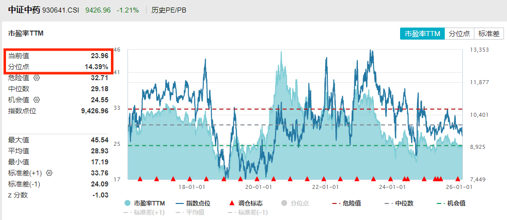 作为大消费内的重要子板块,中药行业估值也似乎正在进入“甜区”。估值上看,中药ETF(560080)所跟踪复制的中证中药指数最新市盈率(PE-TTM)为23.96倍,指数发布以来估值分位点14.39%,意味着指数市盈率已低于2015年5月发布以来85.61%的时间区间,估值性价比凸显!
