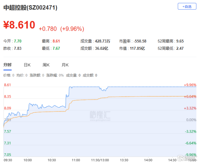 中超控股:今日涨停,全天换手率31.93%,成交额36.02亿元。深股通净买入1.27亿元,营业部席位合计净买入3.85亿元。