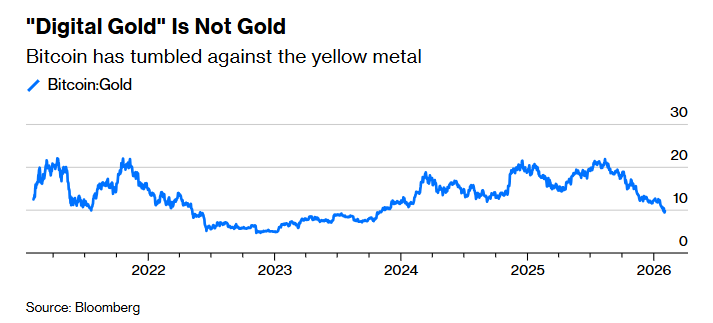 从最近的价格走势可以清楚看出,比特币和黄金都受到全球流动性环境的影响。在沃什(候选人中最偏鹰派的人选)可能接任美联储主席的消息传出后,黄金在上周五创下四十多年来的最差单日表现,周一继续下跌。比特币则在周末暴跌至76000美元以下,回落到去年四月抛售时期的水平。