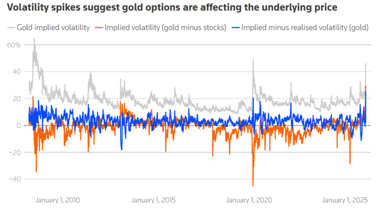 然而,分析指出,更有道理的想法可能是,期权市场的变幻莫测正在扰乱黄金作为地缘政治冲突晴雨表的作用。