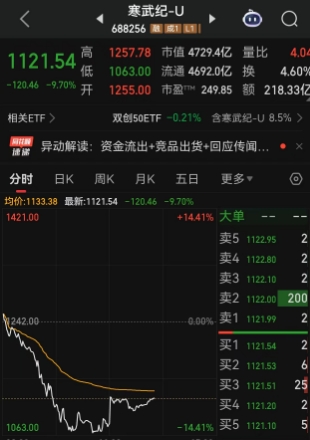 在午间寒武纪火速声明之后,午后寒武纪股价出现小幅拉升,跌幅一度收窄至10%以内。