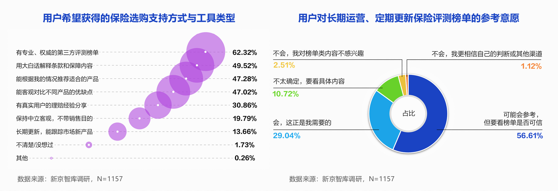 面对决策障碍,用户期待什么样的帮助?报告给出了答案:独立、透明、专业且持续更新的第三方测评工具。调研显示,62.32%的用户希望获得“专业、权威的第三方测评榜单”,85.65%表示愿意参考长期运营的保险测评榜单。用户对测评工具的判断标准极为清晰:“由第三方独立机构发布”与“测评标准公开透明”位居前两名,此外还有“长期持续更新”和“覆盖市面主流产品”。