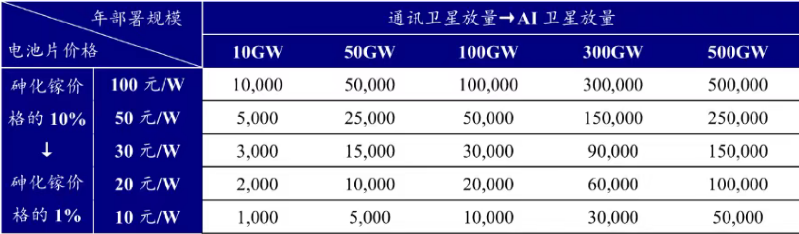 数据来源:国盛证券-低轨星座竞赛与太空算力革命,引爆太空光伏需求新周期-260201;图表来源:国泰海通-商业航天发展提速,太空光伏迎布局良机-20260126。注:对于以上引自证券公司等外部机构的观点或信息,不对该等观点和信息的真实性、完整性和准确性做任何实质性的保证或承诺。