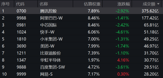 注:以上为恒生科技指数成分股,仅做展示,不作为个股推介。