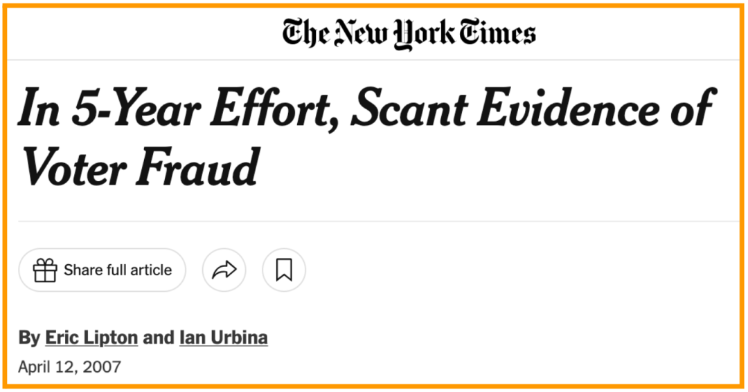 问题是,几十年来,打击选民舞弊一直是共和党人孜孜以求的目标,小布什的5年严打,只是共和党几乎不间断的类似大型行动中的一个。但无一例外地,所有这类项目都以没有系统性选民舞弊的结论告终。